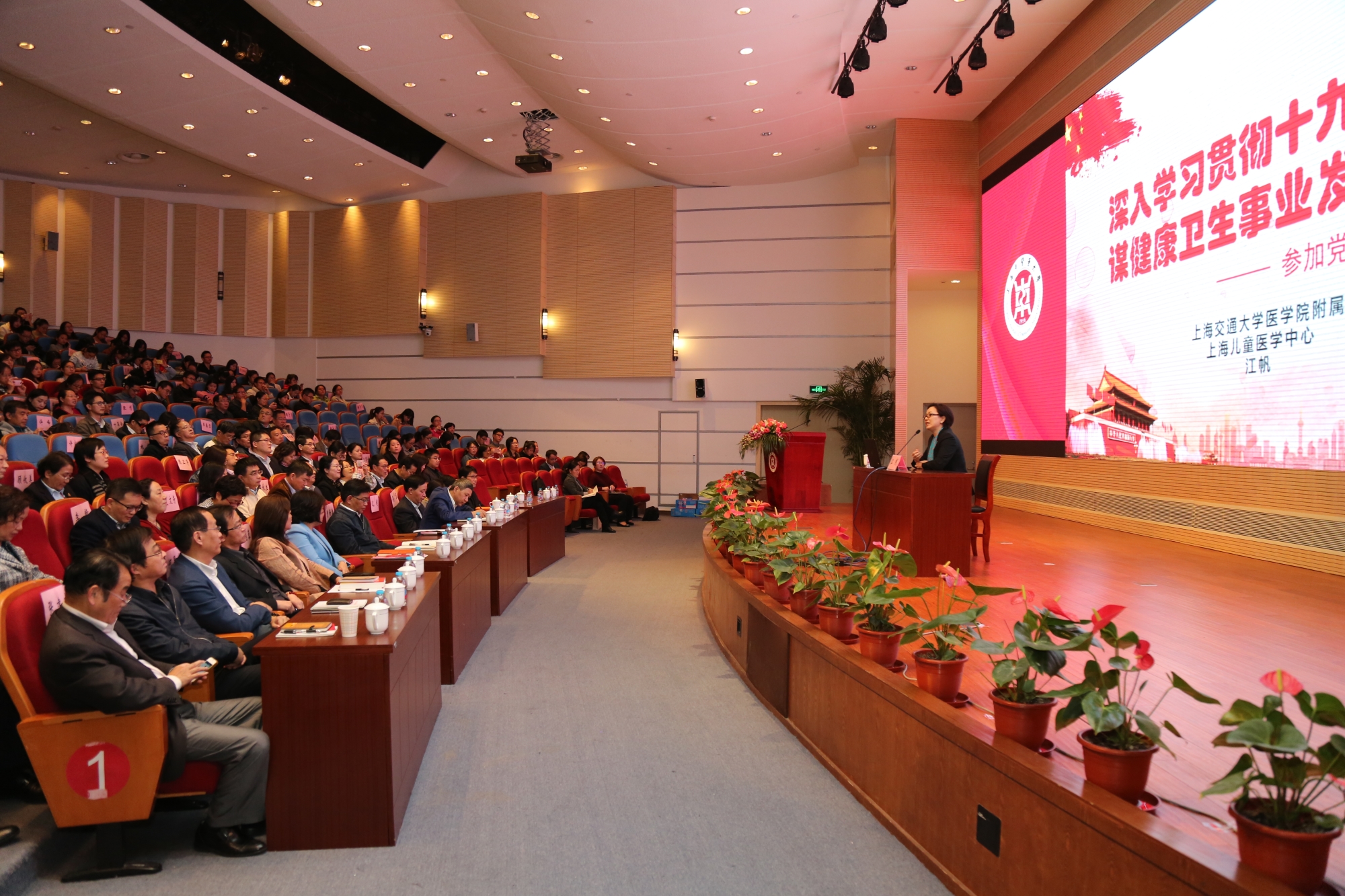学习会特邀党的十九大代表、上海交通大学医学院附属上海儿童医学中心党委书记江帆主讲,这是她参会回沪后的第16场报告。围绕“深入学习贯彻十九大精神,谋健康卫生事业发展未来”的主题,江帆从“行前准备与出发”“在人民大会堂聆听十九大报告”“分组讨论,思想火花碰撞”“光荣地行使代表选举权”和“参会感受”五个方面展开分享。她对十九大报告的大会主题和报告结构进行阐释,重点解读了中国特色社会主义进入新时代、我国社会主要矛盾的转变、新时代中国共产党的历史使命和习近平新时代中国特色社会主义思想写入党章等内容,并传达了“实施健康中国战略”“提高保障和改善民生水平,加强和创新社会治理”的报告精神。她还用“震撼、感动、骄傲、鼓舞”四个词语展示了她的收获和体会。最后,江帆将“不忘初心、牢记使命,把学习十九大精神成果,转化为谋健康卫生事业发展、抓改革、促创新的强大动力,为实现中华民族伟大复兴梦贡献自己的力量”这句话送与参会人员共勉。