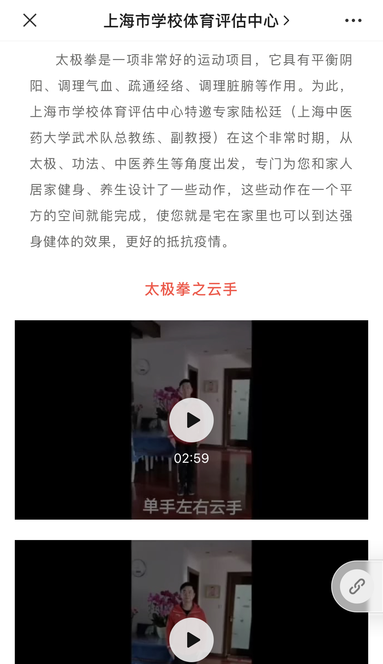 近期,患者和医护人员在被誉为“生命之舱”的方舱医院中练习八段锦、太极拳的视频走红网络。我校体育部党支部积极践行社会责任,在新冠肺炎防控期间显身手,结合体育部特点和专业优势,通过传播推广传统武术中养生功法套路,关爱群众身心健康,用行动践行中医体育人的初心和使命。