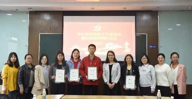 4月22日,公共健康学院党总支在9303会议室举办学生党员培养工作座谈会暨党建导师聘任仪式。公共健康学院党总支书记段艳霞、教学实验中心党支部书记可燕、上海中医药博物馆党支部副书记郭峰、公共健康学院党总支副书记干旦峰,党建导师代表郑小宇、刘洋,公共健康学院组织员江慧芬、学生党支部书记冉秋、辅导员张胜男,学生党员代表等出席。会议由干旦峰主持。