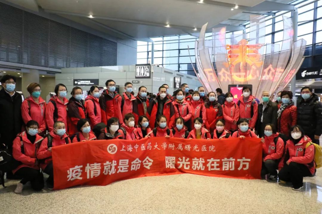 在虹桥机场,医疗队员们整装待发时,上海市副市长宗明,上海市卫生健康委党组书记黄红,上海市卫生健康委副主任、上海市中医药管理局副局长张怀琼,我校党委书记曹锡康、校长徐建光等一行到机场为医疗队员们送行。