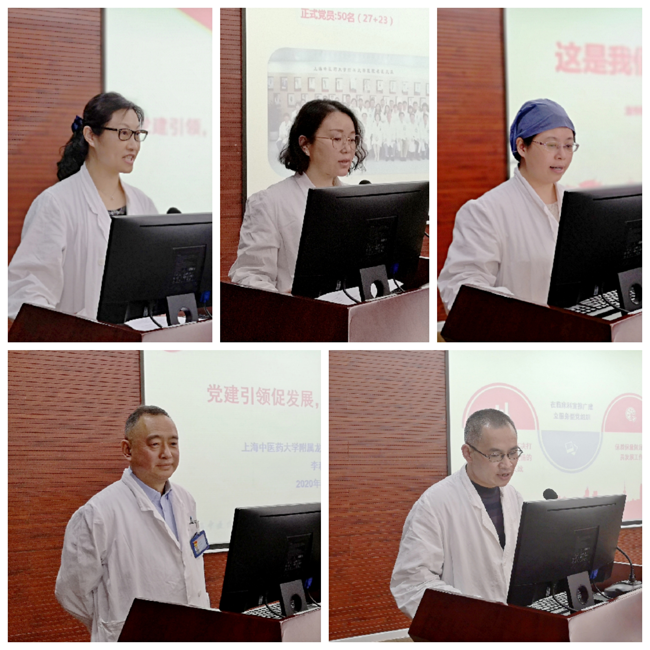 会上,“全国党建工作样板党支部”龙华医院内科三支部书记沈琳,校“双带头人”党支部书记工作室梁晓强、魏华凤,“冲关”申报样板支部肿瘤学科党总支书记李和根、内科二支部书记王奕分别总结了创建工作的开展情况和主要成果,并重点汇报了建设过程中遇到的困惑及下一步建设思路。