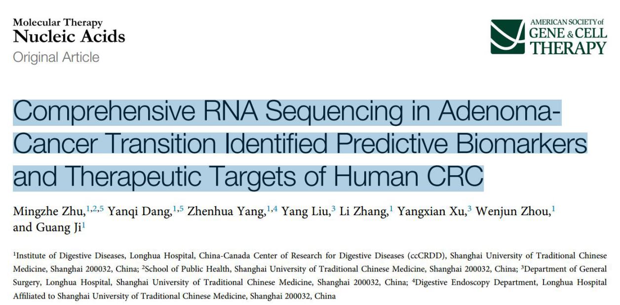 我校附属龙华医院研究团队发现结直肠癌炎癌转化生物标志物,为结直肠癌的早期诊断及治疗提供依据