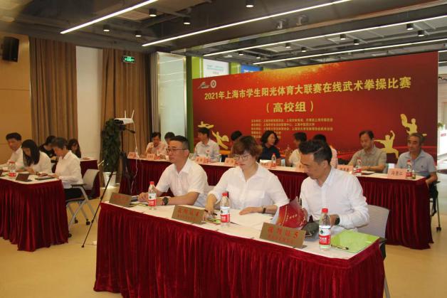 5月29日上午,2021年上海市学生阳光体育大联赛武术拳操比赛在我校以直播形式在线举行。此次比赛由上海市教育委员会、上海市体育局、共青团上海市委员会主办。来自沪上14所高校的343名学子参加此次比赛。比赛由各单位提前录制视频上传,根据抽签顺序安排视频现场播放,裁判组成员统一在线观看视频后进行打分。上海市教委体卫艺科处副处长时多,上海市学生活动管理中心副主任盛炯、体育部副部长黄孙巍,上海师范大学教授张福云,上海体育学院教授刘同为,上海师范大学教授高幕峰,我校体育部主任吴志坤、体育部传统保健体育教研室主任冯金瑞等出席比赛开幕式。