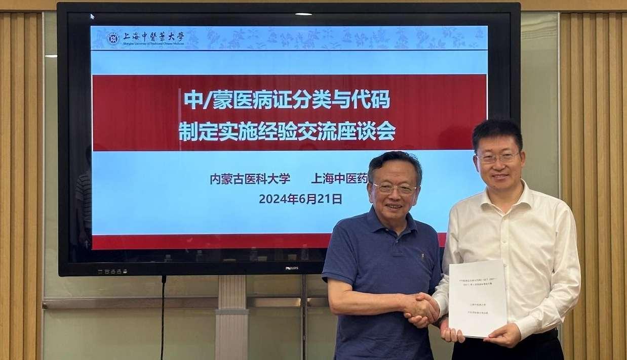 6月21日上午,内蒙古医科大学副校长伊乐泰、全国中医药高等学校教学名师斯琴等一行到我校开展《中医病证分类与代码》国家标准制定与实施经验交流。我校党委副书记、副校长孟煜,科技人文研究院副院长陈丽云,上海文史馆馆员、上海市名中医、教授朱邦贤,中医方证信息研究中心及中医国标修订项目组相关专家出席座谈会。