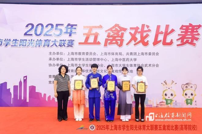 2023年,五禽戏首次作为上海市学生阳光体育大联赛比赛项目,吸引了10所高校300多名运动员参赛。两年间,这项赛事规模持续扩大。在比赛现场,参赛队员们身着统一服装,伴随着悠扬音乐,将五种动物的神韵演绎得惟妙惟肖。虎戏似猛虎出山,气势磅礴;鹿戏若灵鹿跃涧,轻盈敏捷;熊戏如笨熊漫步,沉稳厚重;猿戏像猿猴嬉闹,灵活俏皮;鸟戏仿佛飞鸟凌空,优雅舒展。