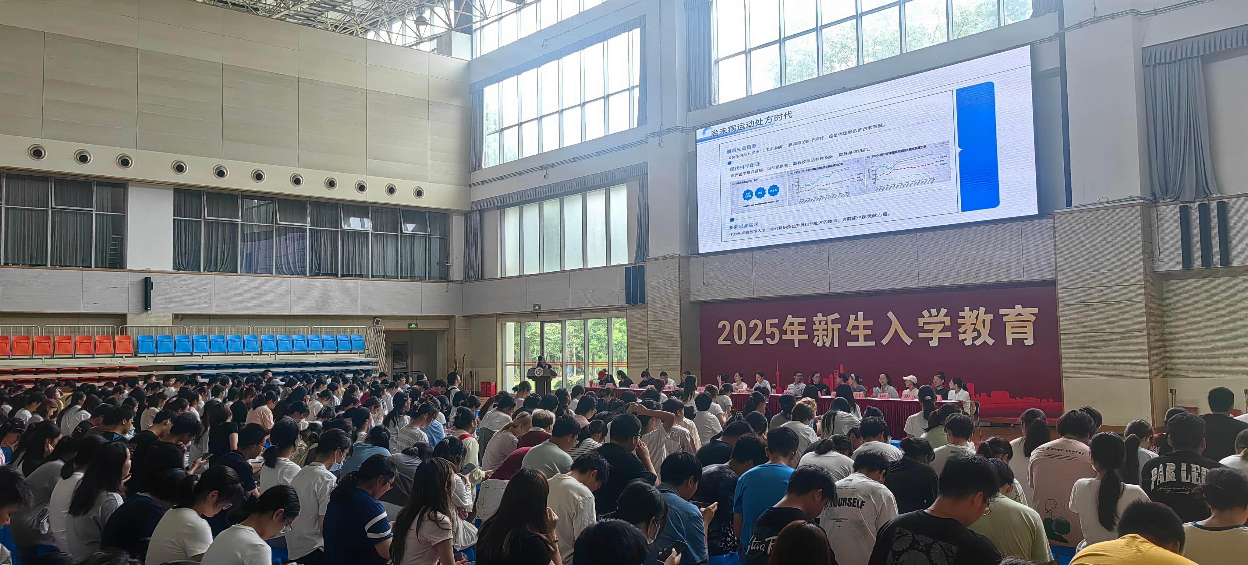 9月9日下午,体育部为2025级新生精心打造了一堂别开生面的体育第一课。课程以“做好体育‘加法’,助力健康中国”为主题,将传统中医养生理念与现代体育科学相融合,为新生们带来了一场内容丰富、意义深远的健康教育体验。