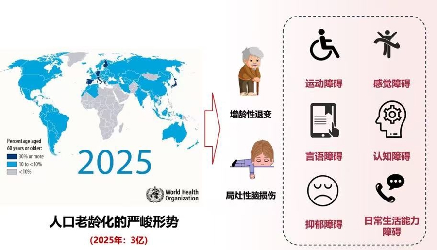 我国正进入老龄化社会,康复需求水涨船高,预计到2035年65岁以上老人将突破4.2亿,每3个人里就有1位老人。以脑卒中为例,目前全国每年新发卒中340万例,现存卒中患者中75%遗留不同程度的残疾,如偏瘫、失语、认知障碍等。40%的卒中患者需要长期护理,平均护理时间长达5-10年。卒中需要病后康复,规范的康复能明显减少致残致死率,但现有相关康复服务体系存在诸多不足。