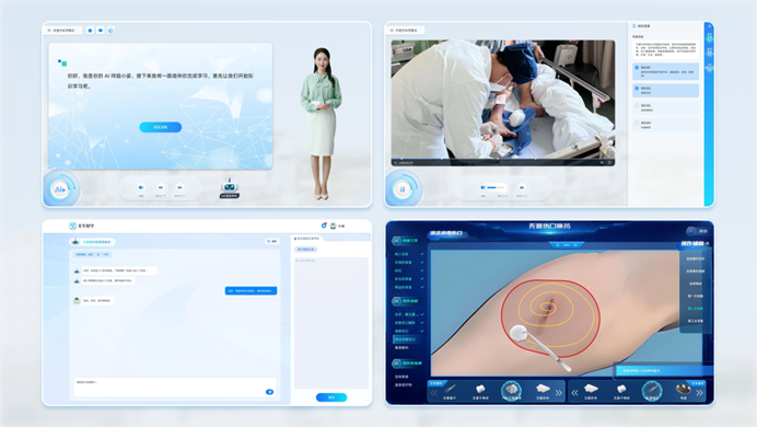 平台依托AI多模态交互系统框架,创新构建了“AI知识空间”“AI诊室”“虚拟治疗室”等沉浸式互动学习场景。通过“数字人导师”引导学生完成模块化学习任务,开展实时互动与即时反馈,精准响应学习成果,充分调动学生积极性与参与度,推动其由被动接受者转变为主动参与者。