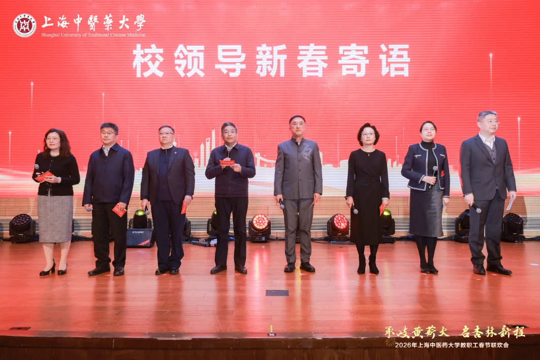 联欢会在教工电声乐队的精彩开场表演中拉开帷幕,瞬间点燃全场热情。校领导登台送上新春寄语,从传承岐黄初心、深耕人才培养、促进国际传播、攻坚学术科研、推动创新发展、服务社会民生、凝聚校园温情到擘画未来蓝图等多个维度,既回顾了学校七十载栉风沐雨的奋斗历程,也表达了对教职工的殷切关怀与美好祝愿,激励全体上中医人在新征程上砥砺前行。