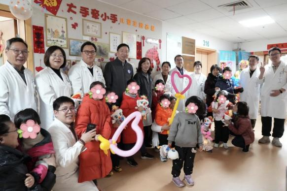 普陀医院团委联合康复医学科、儿科,推出“大手牵小手”与“温暖童行”主题服务活动,通过脑瘫患儿画展、暖心互动、爱心赠礼等环节服务患儿,传递关怀与温暖,用医者仁心守护患儿成长。