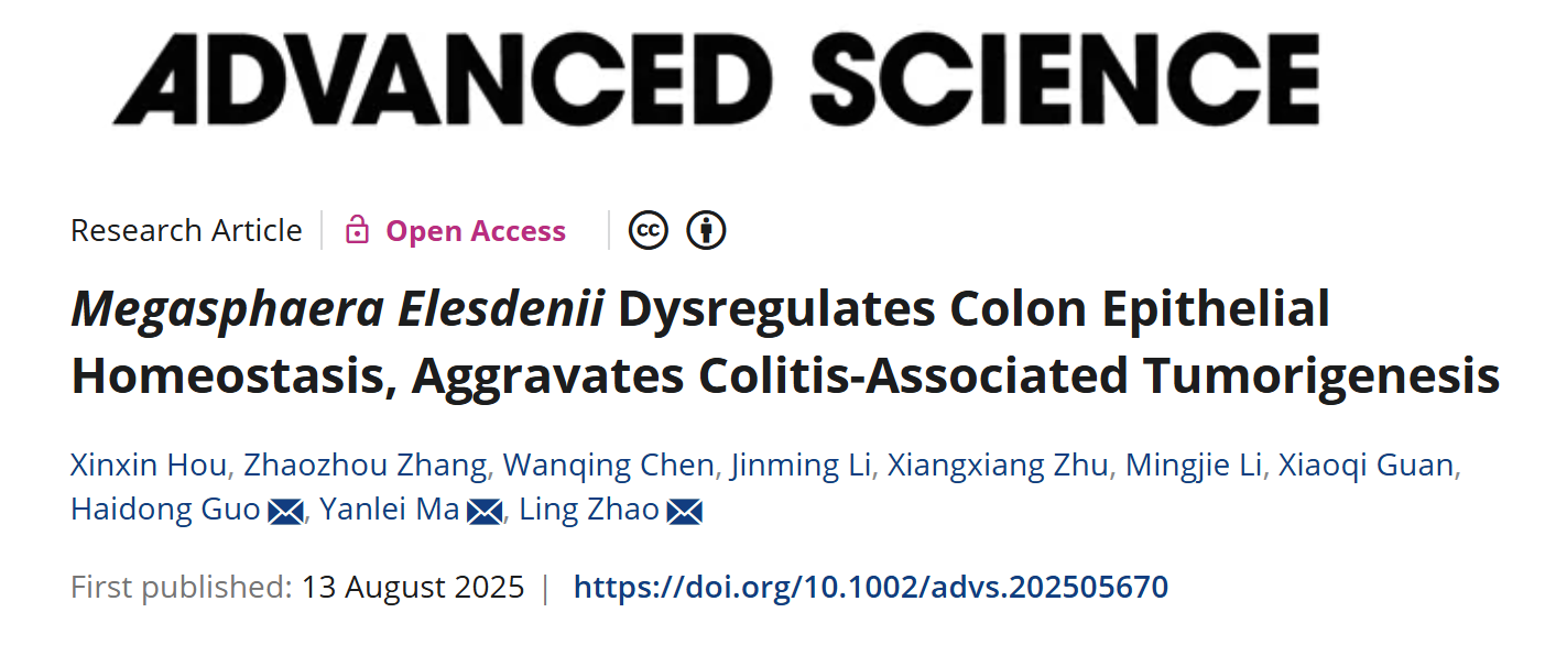 近日,我校中西医结合学院赵玲研究员、国海东研究员团队与复旦大学附属肿瘤医院马延磊主任团队合作,在国际期刊AdvancedScience上发表题为“MegasphaeraElesdeniiDysregulatesColonEpithelialHomeostasis,AggravatesColitis-AssociatedTumorigenesis”的研究成果。结直肠癌是全球第三常见的癌症,也是全球癌症相关死亡的第二大原因。其发病机制复杂,涉及遗传、环境、肠道微生态、慢性炎症等多因素的相互作用,目前尚未完全阐明,但慢性炎症是导致“炎癌转化”的病理基础。团队首先从已发表的多组临床队列中发现肠道菌属Megasphaera在炎症性肠病(IBD)及结直肠癌(CRC)中明显富集。随后,通过Megasphaeraelsdenii(M.elsdenii)单菌定植实验发现M.elsdenii能够重塑小鼠结肠黏膜固有层免疫细胞群,诱导树突状细胞(DC)成熟,并促进促炎性Th1及Th17细胞分化,加重结肠炎性反应。在机制上,M.elsdenii通过LPS/TLR4/IRF4通路诱导DC细胞成熟。进一步在AOM