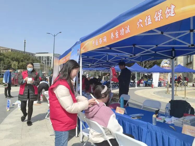3月7日中午,支部书记毛慧娟老师带领支部党员邓海平、秦梦、程珂、赵吉忠4位老师,研究生支部书记邓炜带领2名学生党员,来到学雷锋日主题活动现场——长泰广场为群众提供现场义诊、艾灸与耳穴、推拿服务、刮痧治疗等志愿服务。