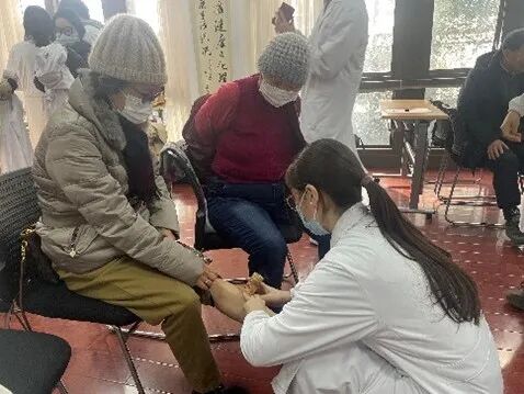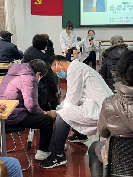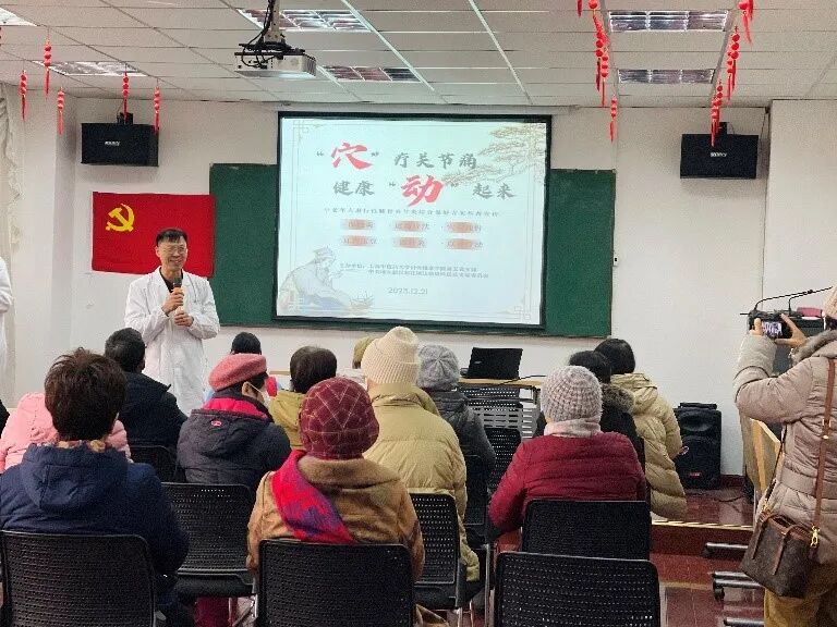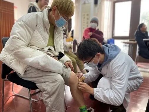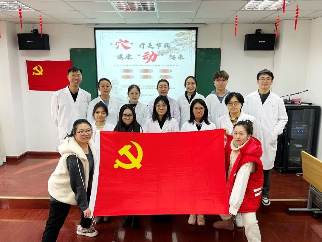 为宣传中医文化、推广针灸防治退行性膝骨关节炎的居家防治技术,让中医药惠及更多的人,2023年12月21日,针灸推拿学院第五党支部与浦东新区张江镇江薇居民区党总支共建单位,在张江阳光花城小区举办了“‘穴’疗关节痛,健康‘动’起来”——针灸防治退行性膝骨关节炎科普宣传社会实践活动。