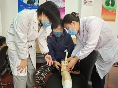 接下来,团队成员介绍了退行性膝骨关节炎的症状,温和灸、耳穴埋豆和膝关节运动操的具体操作方法及注意事项,膝关节附近常用穴位足三里、膝眼、血海等的位置、取穴方法,并现场演示、示范,指导居民现场学习实践操作方法,实现居家自我防治退行性膝骨关节炎,缓解疼痛,改善关节功能,提高生活质量。