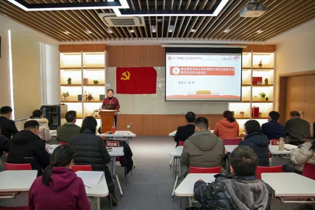 大会认为,过去三年,针灸推拿学院党委在学校党委的领导下,全面贯彻习近平新时代中国特色社会主义思想,深入学习贯彻党的十九大和二十大精神,坚持和加强党的全面领导,抓住主题主线,扎实深入开展党史学习教育和学习贯彻习近平新时代中国特色社会主义思想主题教育;加强基层组织建设,政治功能和组织功能不断增强;强化政治思想引领,守牢意识形态工作主阵地;做好统一战线和群团工作,凝聚改革发展合力;加强党风廉政教育,认真落实巡察整改工作;组织实施专业主干课程的全课程思政体系建设和“明理—读经—练功”卓越针推人才培养计划。学院党委在第二轮“攀登”计划中被遴选为上海高校党建工作标杆院系培育创建单位,针灸推拿青年志愿者服务队被共青团中央授予第十四届青年志愿者优秀组织奖;第四党支部列选上海市教卫工作党委系统“党支部建设示范点”,有4个支部进入学校样板党支部、“双带头人”工作室培育创建并有2个支部在第一期建设中通过验收,党的建设工作展现新气象,引领推动学院发展展现新作为。学院在人才培养、科学研究、社会服务、文化传承创新、国际交流合作等方面作出新贡献,在合作共建黄大年式教师团队和国家级虚拟教研室、入选国家级一流本科专业和一流本科课程建设、获得上海市和全国教学创新大赛大奖、立项高级别课题和高级别人才项目、发挥专业优势防控新冠疫情等方面取得有显示度的新业绩。在看到成绩的同时,也深刻指出工作中存在的不足。在今后的工作中,针灸推拿学院党委全面贯彻习近平新时代中国特色社会主义思想和党的二十大精神,坚持不懈以习近平新时代中国特色社会主义思想凝心铸魂,按照全面、系统、整体的要求落实党的领导,坚持党建工作与事业发展深度融合,以高质量党建引领推动学院高质量发展,在系统规划、整体推进学院内涵建设,深入推进全课程的课程思政体系建设和“明理—读经—练功”卓越针推人才培养方面发挥好学院党委的引领推动作用、党支部的战斗堡垒作用和党员的先锋模范作用。大会号召全体共产党员、全院师生紧密团结在以习近平同志为核心的党中央周围,坚定信心、同心同德,埋头苦干、奋勇前进,聚焦学校全面建设世界一流中医药大学,落实好立德树人的根本任务,为党育人、为国育才!