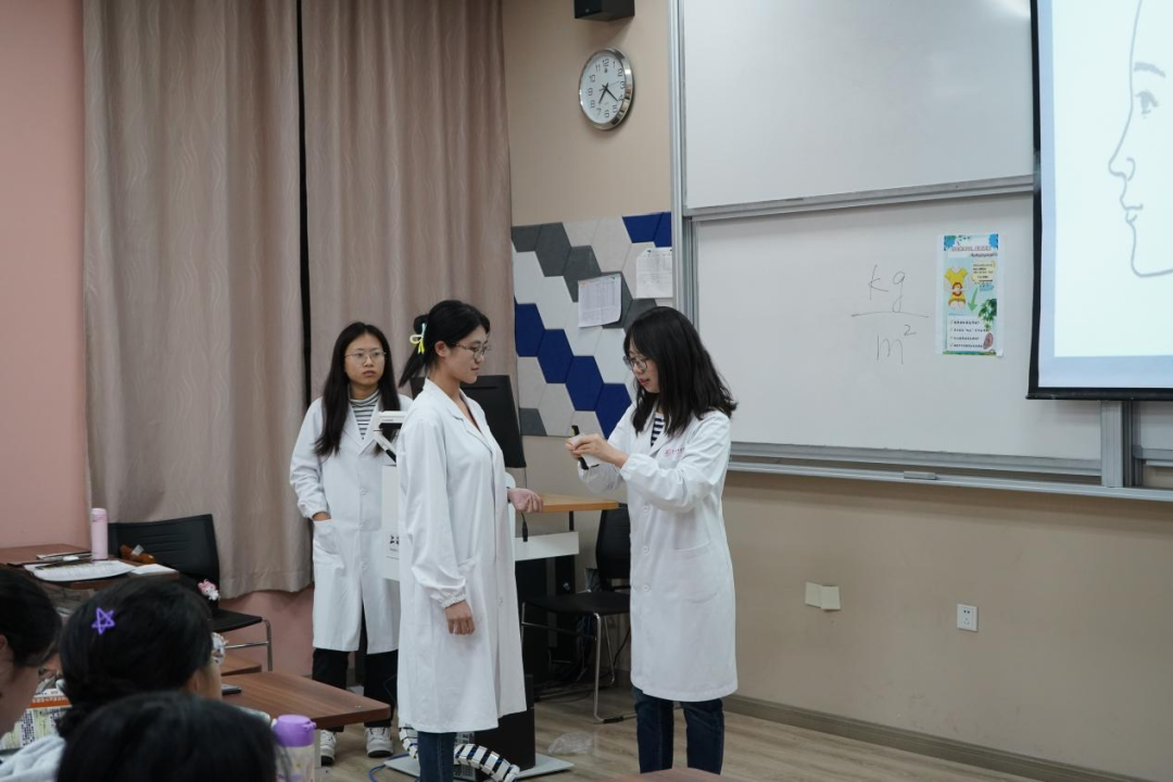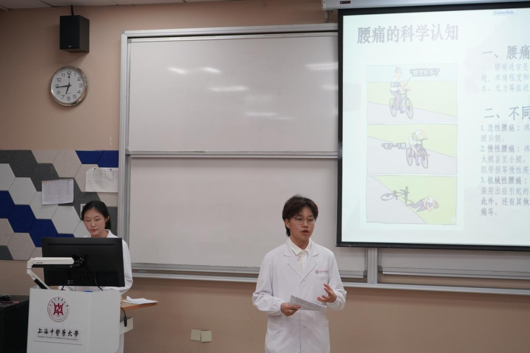 本次大赛采用“跨年级组合”的赛程规则,比赛方式为线下讲解,6组团队按顺序,针对日常生活中不同的常见健康问题进行科普展示。