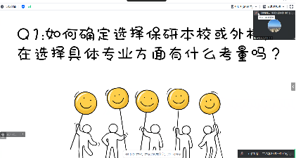 刚刚进入大学,我对未来有点迷茫,恰逢宁艺冰学姐讲述了保研在本校还是外校的考量,保研的准备时间和要求。在社会实践方面的经验分享等。学姐幽默风趣的说话风格,满满的干货分享,这令我深受启发。我也要像宁艺冰学姐一样勤奋努力,积极向上。