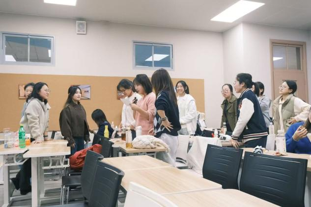第三个活动“杏花朵朵开”将现场气氛推向高潮。全体成员分成两组,先后移步至场地中央,围成大圈进行慢跑。在主持人“杏花朵朵开”的口令下,大家齐声回应“开几朵?”,待主持人随机报出一个数字,参与者按相应人数抱团组合。在一次次紧张的抢人与报团中,极大地增强了彼此的互动与亲近感。值得一提的是,本环节的惩罚机制别具一格。未能成功抱团的同学,受邀参与表情包模仿。这一设计使气氛热闹欢快,大家在笑声中熟悉彼此。