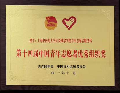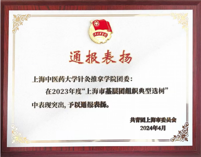 针灸推拿学院团委以习近平新时代中国特色社会主义思想为指导,把牢政治方向,铸牢团员青年思想品格,创新志愿服务和实践育人育人机制,连续二十余年建成“知识普及-功法教学-推拿服务-中医智慧医疗新技术 ”一站式、立体化志愿服务机制,坚持深入社区、中小学、养老服务机构,面向儿童、青少年、老年人、罕见病患者开展全生命周期科普,荣获共青团中央表彰的第十四届中国青年志愿者优秀组织奖,上海市青年五四奖章、“知行杯”上海市大学生社会实践大赛特等奖、一等奖等众多荣誉,在2023年度在“上海市基层团组织典型选树”中表现突出,获共青团上海市委员会予以通报。