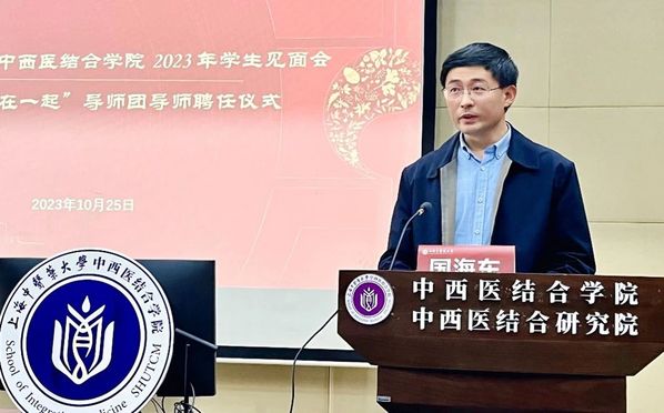 落叶飘舞,暖阳如绸。为深入学习贯彻习近平新时代中国特色社会主义思想和党的二十大精神,落实“立德树人”根本任务,领会学校“跨界协同育人——服务学生成长导师团”工作精神,10月25号下午,中西医结合学院召开2023 年学生见面会暨“和学生在一起”导师团导师聘任仪式。中西医结合学院名誉院长、上海市政府参事陈红专,中西医结合学院党委书记、宣传部部长朱慧华,执行院长项耀祖,开云电竞官网下载安卓附属普陀医院副院长殷佩浩,中西医结合学院党委副书记、副院长国海东,解剖学教研室主任、教工第一党支部书记、导师团团长邵水金,导师团全体导师,青年班主任,辅导员以及全院全体本科生、研究生参加,活动由国海东主持。