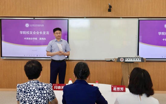 国海东会长表示,中西医结合学院校友会的成立,标志着学院为校友搭建了一个感恩母校、联络感情、交流合作、团结奋进的平台。校友会将依托中西医结合学院“中西合璧”优势,凝聚校友力量,促进学院及校友在学科建设、人才培养、学术交流、社会服务等诸多领域的合作发展,共同把中西医结合学院校友会建设成为充满活力、富有影响力的一流校友组织,为我校中西医结合学科建设贡献积极力量。
