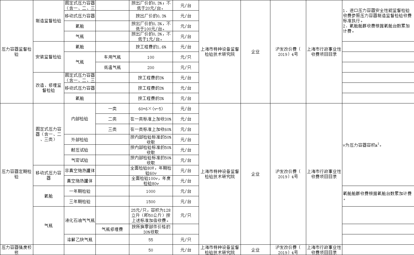 (3)、监督检验证明可联系上海特检对特种设备进行检验。(收费标准:可登入上海特检网站查询)