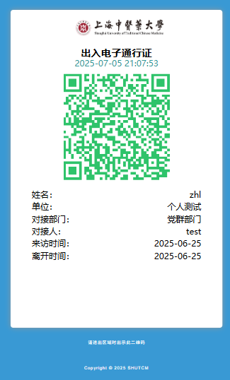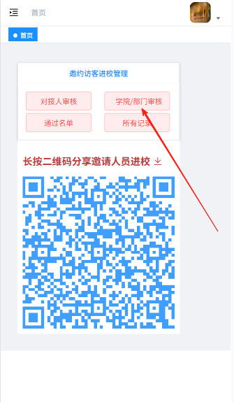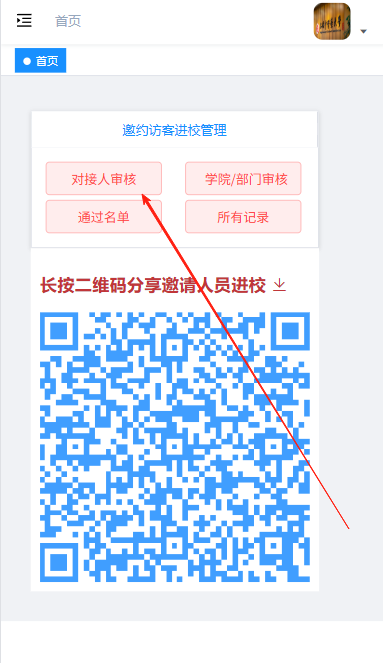 首页获取个人专属邀请二维码(点击可下载),发送给校外人员可填写申报进校信息。