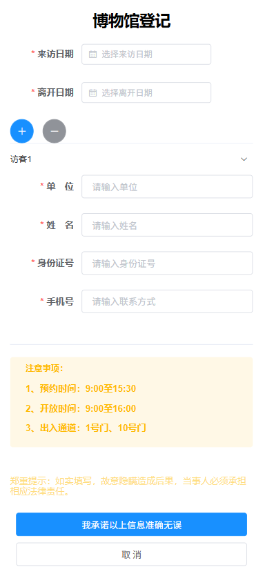 如实填写访客信息内容,如有多位访客,可点击+增加访客。