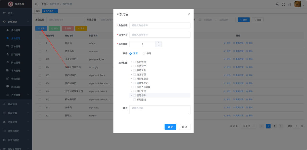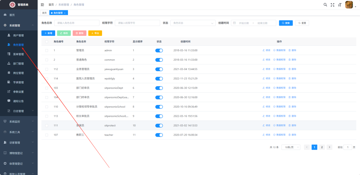 点击【系统管理】【角色管理】进入角色列表页;