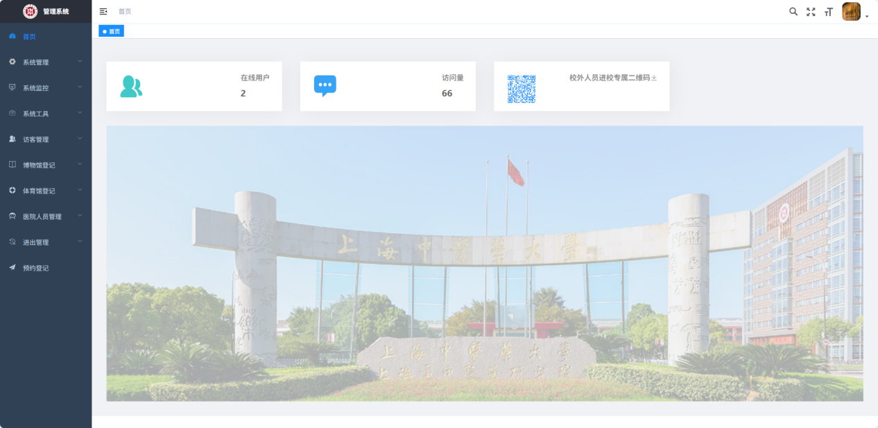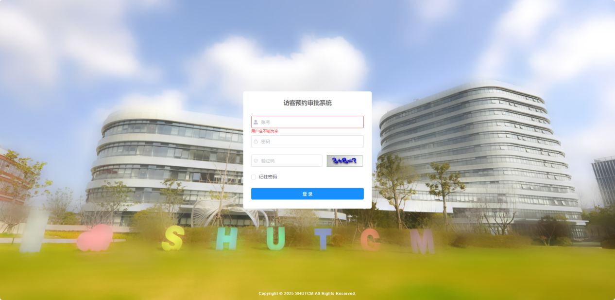 管理员使用PC浏览器访问https://www.fangke.shutcm.edu.cn登录进入访客预约审批系统后台。