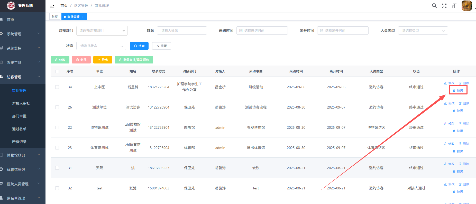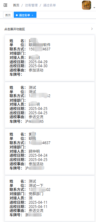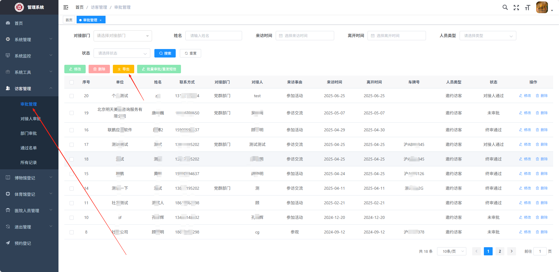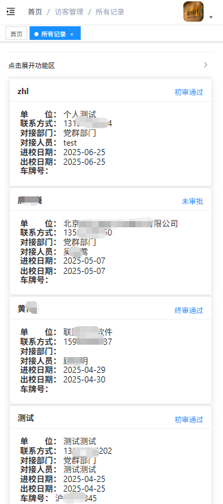 点击【访客管理】【审批管理】进入所有访客列表页面;