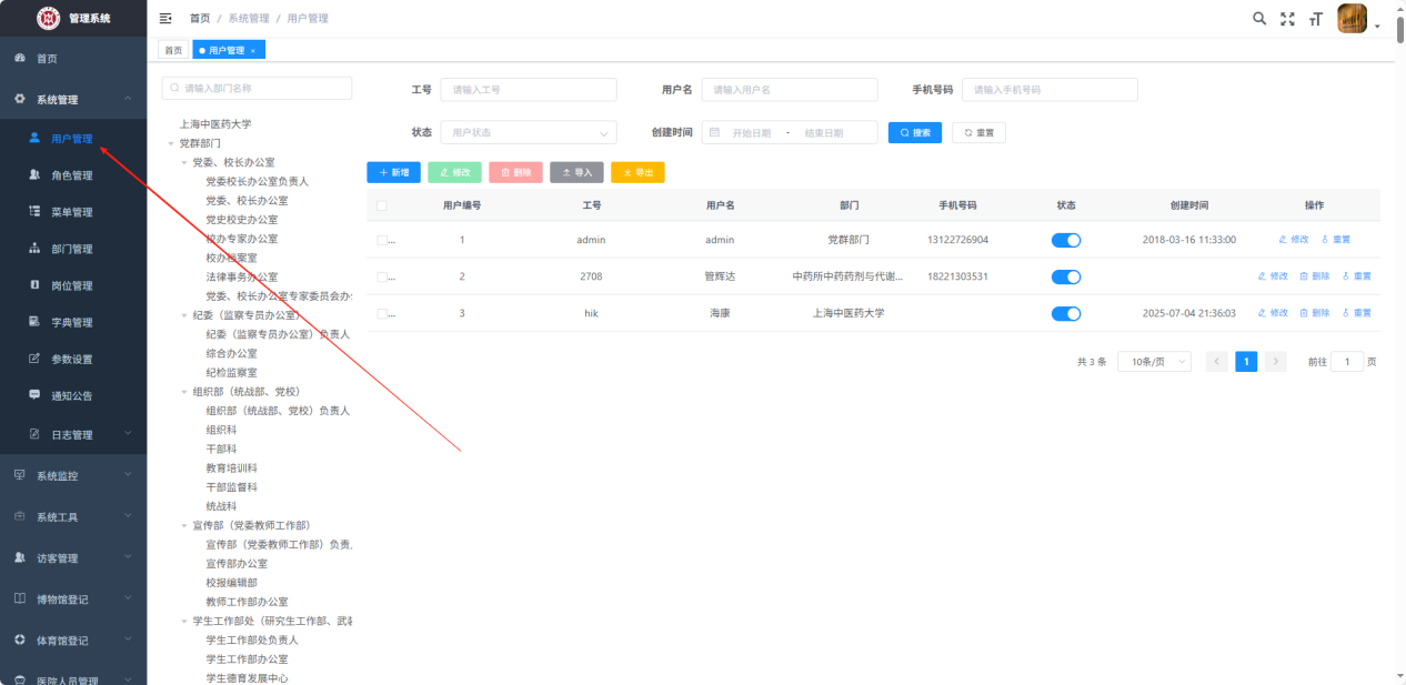 点击【用户管理】进入用户列表页面;