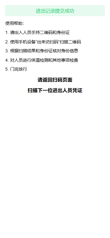 安保人员使用手持终端“扫一扫”,扫描访客的通行码,验证通过后,放行。