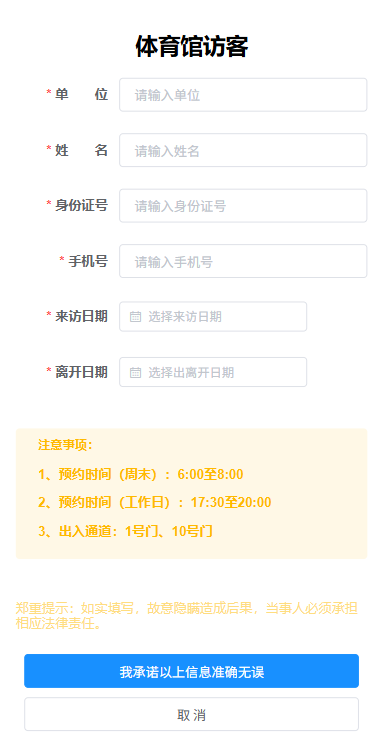 体育馆登记
