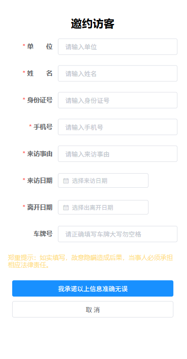 进入“邀约访客”,如实填写申报内容。
