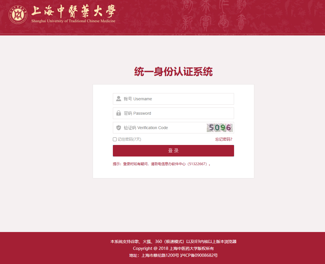 对接人员使用电脑浏览器(建议使用Chrome浏览器,360浏览器使用急速模式)访问网址:https://fangke.shutcm.edu.cn/prod-api/ssologin