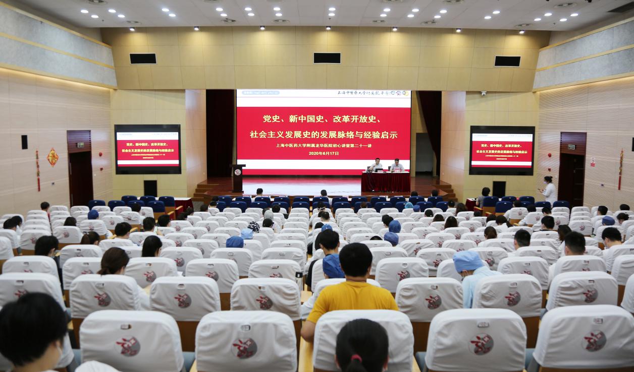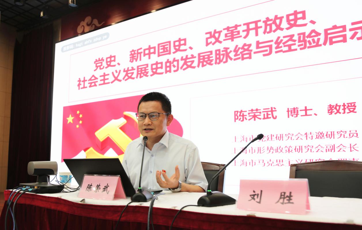 为进一步推进“四史”教育,帮助全体党员、干部更好地把握党史、新中国史、改革开放史、社会主义发展史的学习主线,6月17日下午,附属龙华医院党委中心组(扩大)学习会暨初心讲堂第二十一讲举办,上海市党建研究会特邀研究员、上海市形势政策研究会副会长、上海市马克思主义研究会理事、开云电竞官网下载安卓马克思主义学院陈荣武教授受邀作《党史、新中国史、改革开放史、社会主义发展史的发展脉络与经验启示》专题讲座,讲堂采用“主会场+分会场”的形式。龙华医院党委中心组成员,各党总支、党支部委员,党员代表,民主党派和统战团体代表等近200人集体学习,会议由医院党委书记刘胜主持。