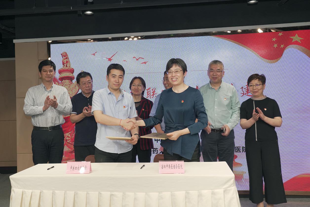 6月22日下午,岳阳中西医结合医院党委书记郑莉,党委副书记、副院长李斌,党委副书记、纪委书记赵庆等党委委员,及党支部书记一行50余人来到中共四大纪念馆海派文化中心,与中共四大纪念馆进行“党建联建、文明共建”结对签约,中共四大纪念馆馆长童科、党支部副书记吴毅斌及党员代表参加。李斌主持仪式。