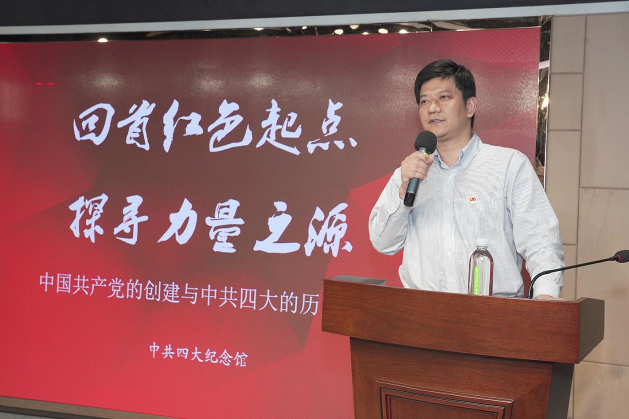 与会人员认真聆听了童科带来的《回首红色起点 探寻力量之源》主题党课,童科用丰富的历史资料生动再现历史事件、党的发展历程。从近代中国、近代上海到近代虹口的历史变迁,完美诠释了上海为什么会是中国共产党的诞生地;从马克思主义在中国的传播到中国共产党的创建之间的历史必然联系,生动诠释了马克思主义为什么“行”,中国共产党为什么“能”;从中共一大到中共四大召开的发展历程,重点解读了中共四大的红色密码“951120”:“9”是指中共四大的9个历史时刻;“5”是指中共四大的五个主要历史成就;“11”是指中共四大时共通过的 11个决议案;“20”是指出席中共四大的20位代表,这20位代表平均年龄是29岁,可称之“跨越百年的80、90、00后”。