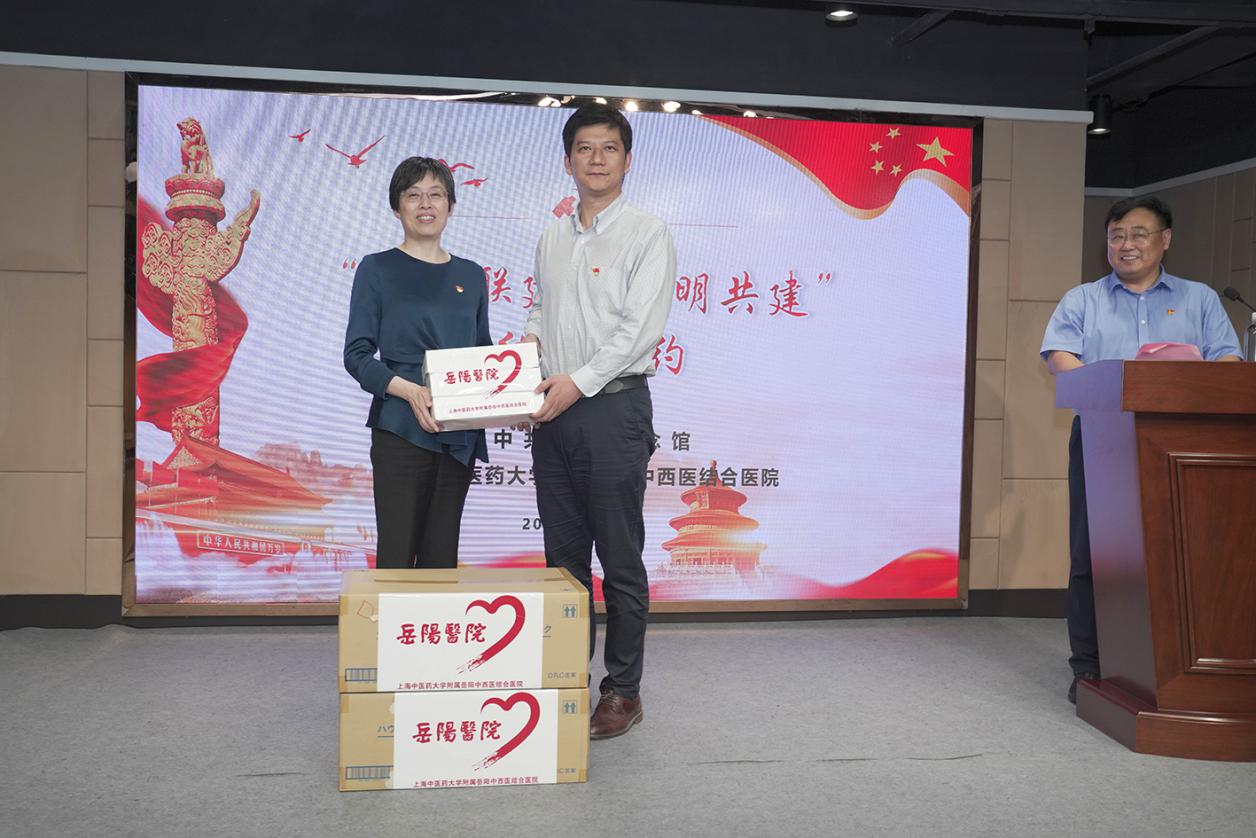 会上,医院党委向中共四大纪念馆爱心捐赠口罩等防疫物资,在上海新冠肺炎疫情常态化防控时期,共同携手、筑牢疫情防控之墙。