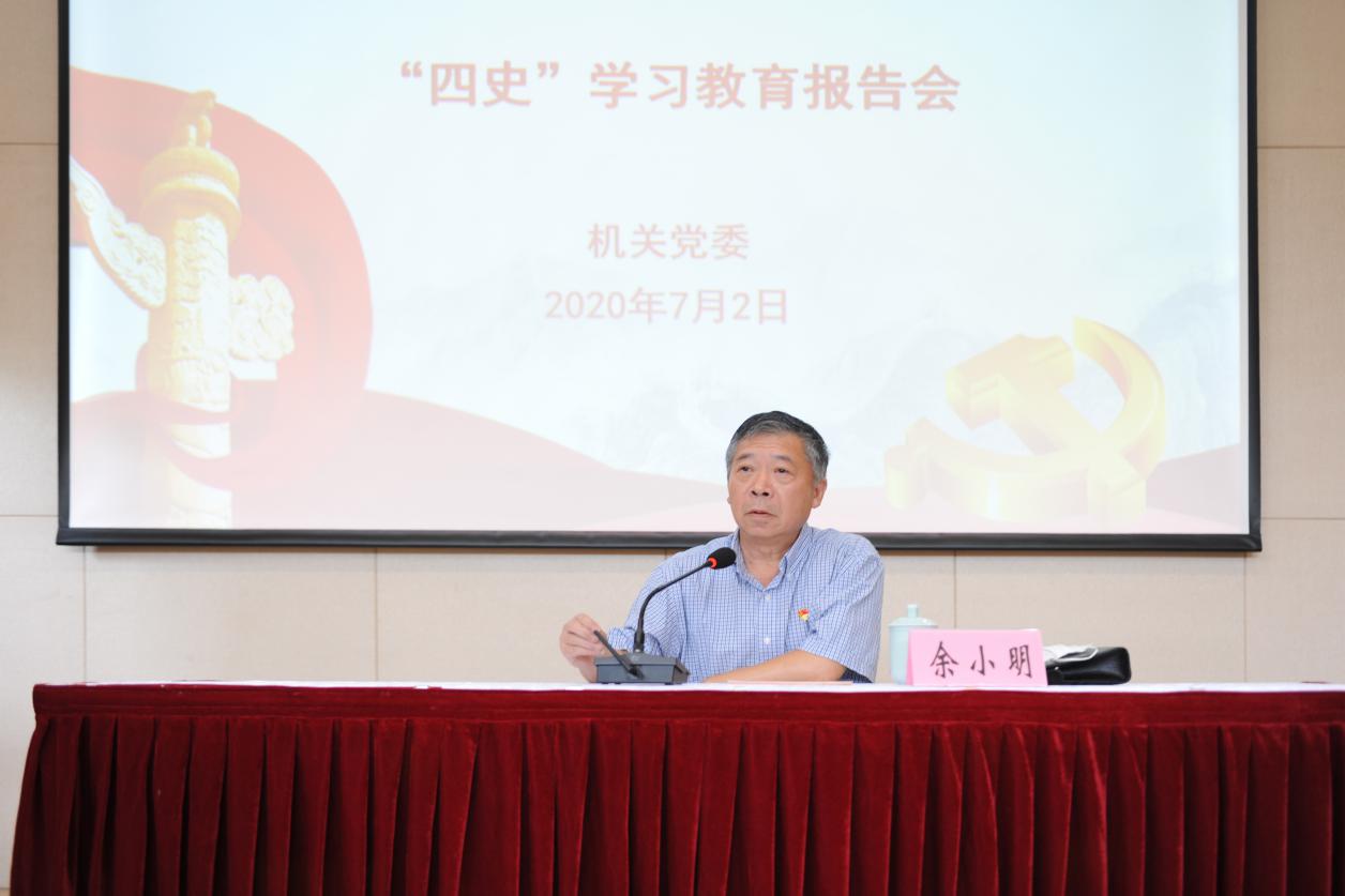 7月2日下午,校机关党委在全球合作伙伴中心一楼报告厅举行“四史”学习教育报告会,校退休局级干部党支部副书记余小明受邀作“讲校史 学‘四史’ 强信心 聚人心”专题报告。校党委副书记、机关党委书记季光,机关党员等100余人参加报告会。会议由机关党委副书记金霞主持。