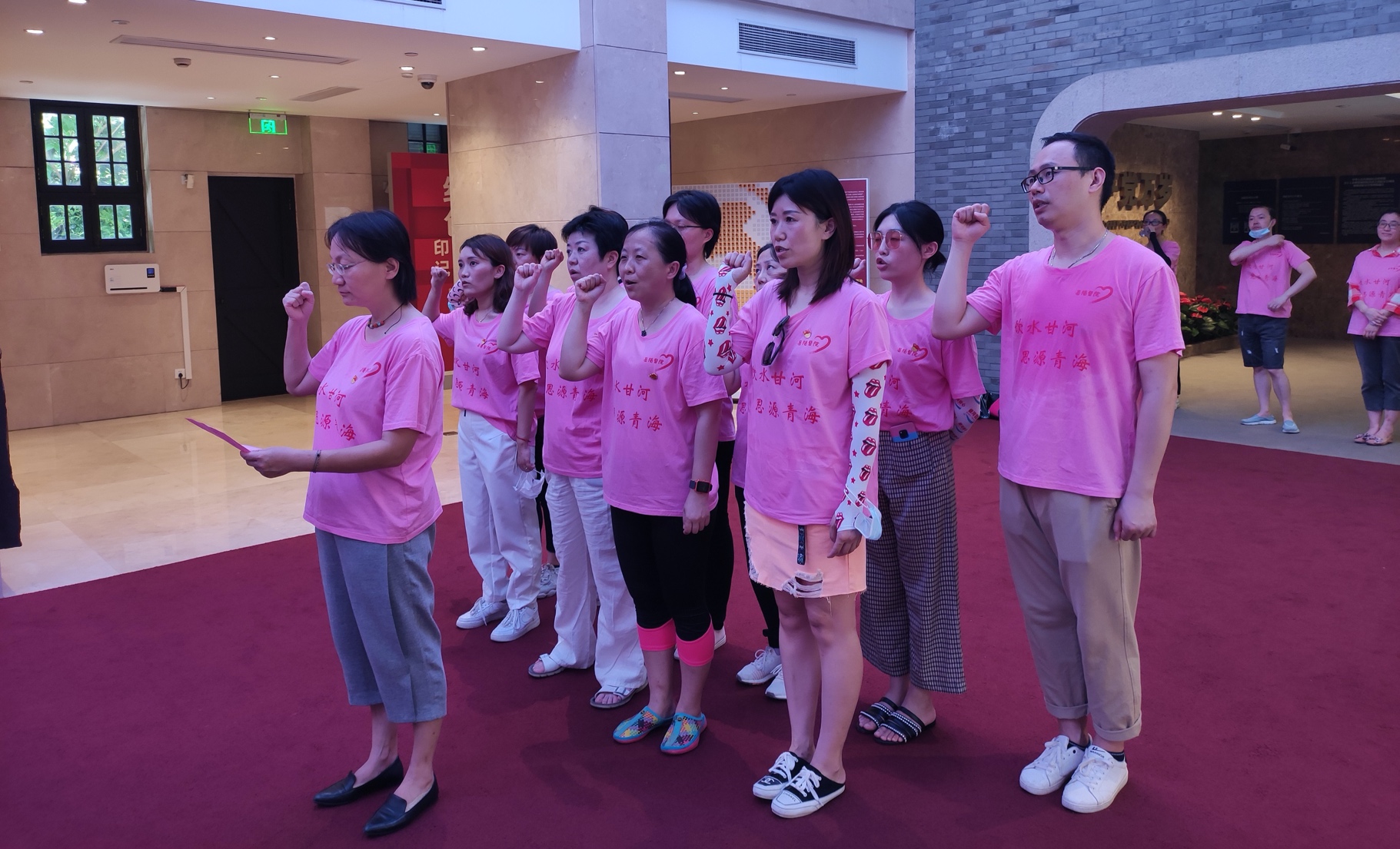 郁郁葱葱的延中绿地有一个辅德里,建于1915年的石库门楼房,当年是中央局宣传主任李达的寓所,这里是我党最重要的历史之一——中共二大会址纪念馆。1922年,中共二大在这里召开,我党的第一部党章便是在此地诞生,二大第一次提出了党的民主革命纲领。它为中国的革命指明了方向,辅德里的故事是党史的一部分,更有文人的笔锋和进步人士的思想。他们影响着新中国,星星之火,传递不息。从此,一代又一代中国共产党人在这面信仰的旗帜下,抛头颅、洒热血,为党和人民奉献一切。在纪念馆内,党员同志们在党委委员施征同志的带领下,在鲜红的党旗前,庄严宣誓,重温入党誓词。入党积极分子们也在这样的活动氛围中感受革命精神和心灵的洗礼,时刻牢记自己的责任和使命,进一步端正了入党动机。