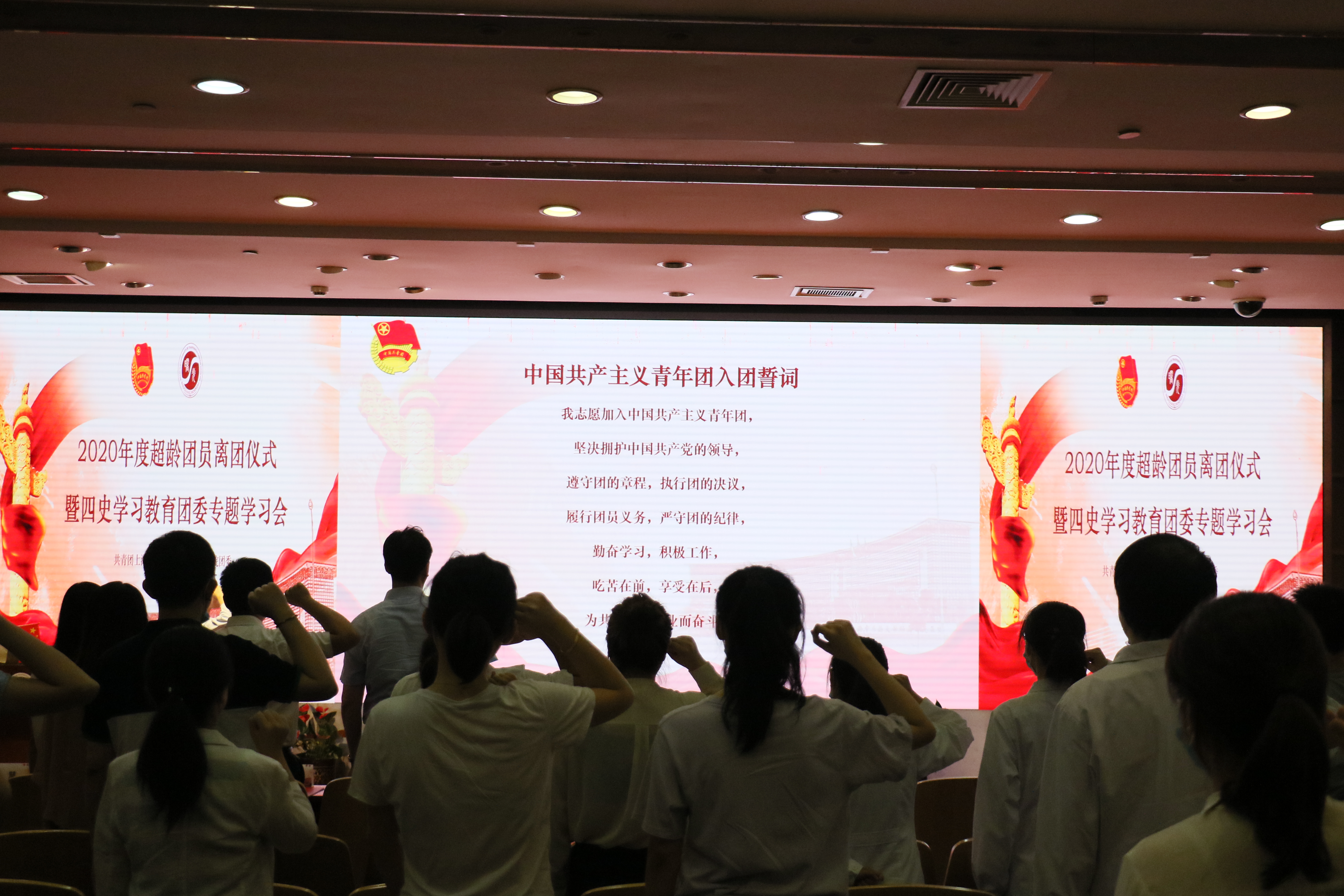 离团仪式上,一段活动视频把团员们带回那些与团组织共同成长的日子,从加入团组织的青涩懵懂到在团旗下成长蜕变,再到超龄离团,共青团陪伴他们走过了人生宝贵的青年时代。