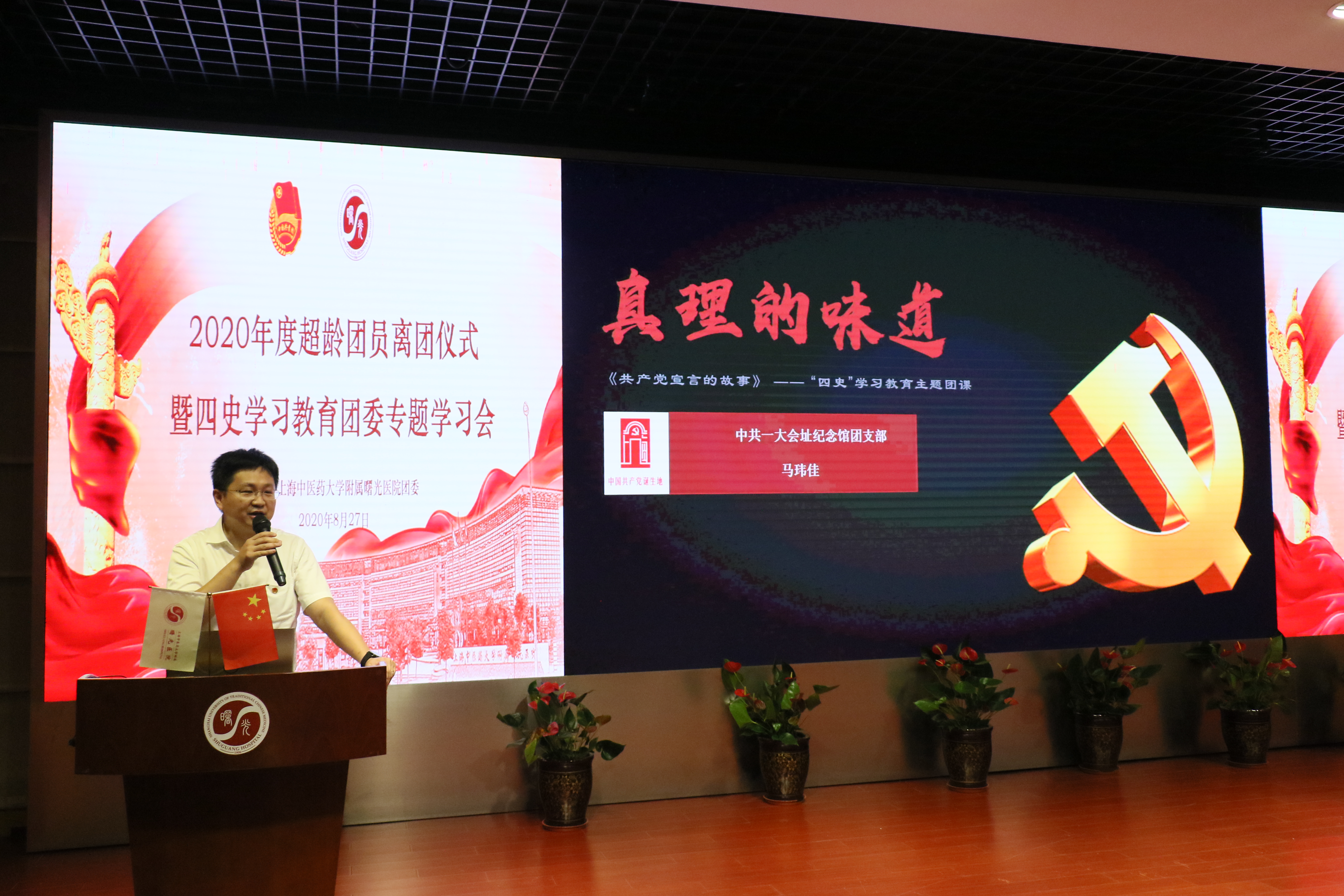 8月27日,附属曙光医院2020年超龄团员离团仪式暨“四史”学习教育主题团课在医院学术报告厅举行。中共一大会址团支部书记、周公馆副馆长马玮佳,开云电竞官网下载安卓团委副书记万婕参加活动,曙光医院党委副书记姚政、组织统战部主任练慧出席,医院团干部和70余位团员青年到场参与。