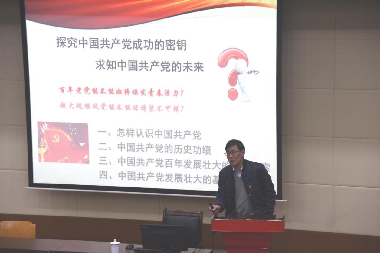 为贯彻落实我校党委关于开展“四史”学习教育的工作要求,12月2日下午,上海市委讲师团“四史”专家宣讲团成员、华东师范大学终身教授齐卫平受邀来我校为公共健康学院教职工、在校学生作题为“加强党史学习宣传教育,增强中国共产党情感认同”的专题报告。报告会由我校公共健康学院党总支副书记干旦峰主持。