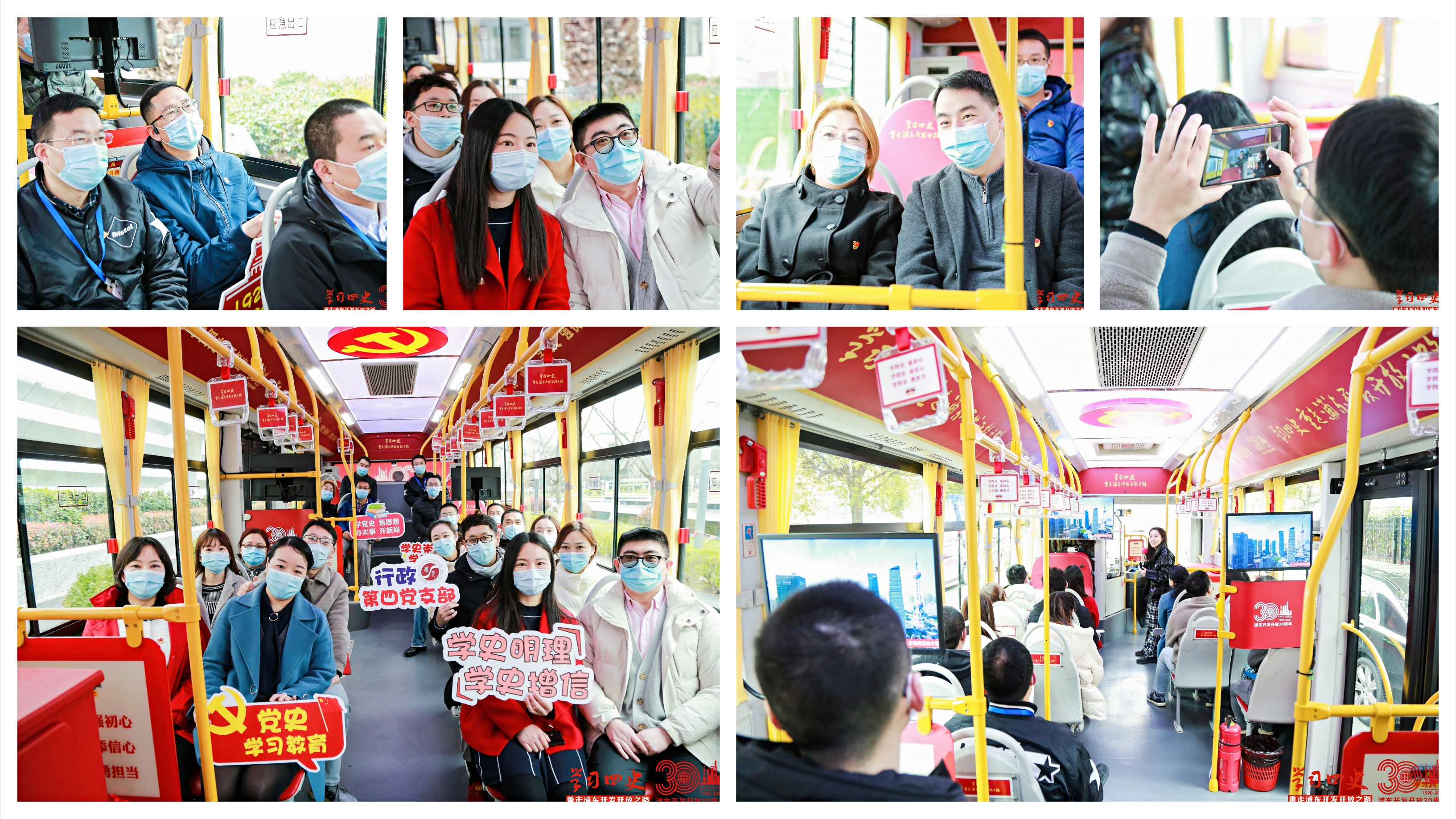 动员大会后,部分党员赴浦东开发陈列馆开展“红色巴士”主题党日活动,搭乘“初心之旅——红色四史巴士”从浦东大道141号出发,沿着陆家嘴开发区,重走浦东开发开放之路。听着车内讲解员讲出的一串串惊人数字,看着车窗外繁华CBD中川流不息的人群,这种边行车、边参观、边讲解、边互动的学习形式,让党员们更具代入感,仿佛亲身见证了浦东从阡陌农田到高楼林立的沧桑巨变,自豪感在心中油然而生。