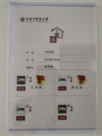 除此之外,根据校党委关于“不忘初心、牢记使命”主题教育的第二十一条工作提示,着力推进“五进三亮”工作,除党员日常佩戴党徽亮身份外,党总支还为研究生党员精心设计了专属相框置于实验台,以展示党员身份,提振党员精气神。同时还在宿舍名牌上张贴党员标识,彰显党员魅力,展现党员实力,提升担当意识和奉献意识,时刻告诫自己是一名光荣的中共党员,用实际行动发光发热,争做楷模,接受群众监督。(中药学院)