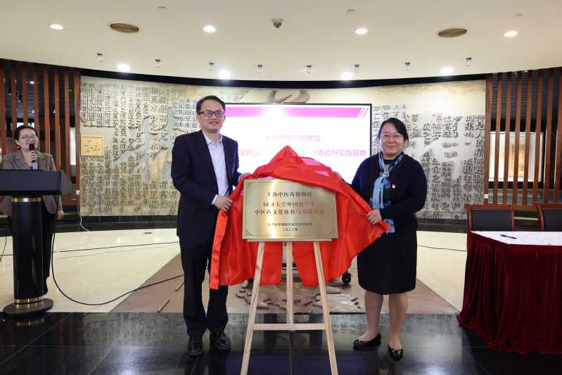 外国留学生群体是推动中华文化走向世界的重要纽带,既是中国故事的“倾听者”,又是中国故事的“传播者”。上海中医药博物馆与同济大学国际文化交流学院携手合作,为该校留学生感知、体验、探索中医药的神奇与奥秘搭建平台。活动现场,李赣和程妤共同为“上海中医药博物馆——同济大学外国留学生中医药文化体验与实践基地”揭牌。今后上海中医药博物馆将发挥自身优势,为同济大学留学生提供中医药体验、科学普及等活动,讲好中国故事,传递中医药声音,引导他们成为中医药文化爱好者,从而点燃向世界传播中医药文化的星星之火,为中医药“一带一路”高质量发展贡献力量。