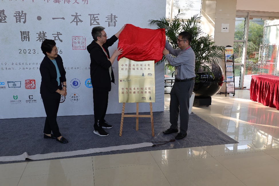 在双方签署“文化共建”战略协议的重要时刻,书法家高壁先生为两家博物馆赠送书法作品以示祝贺。其中一幅作品作为展品随即在“灵兰墨韵•一本医书”联展展出。开幕式上,嘉宾为两家博物馆合力打造的“中华优秀传统文化联合传播实践基地”揭牌,启动 “灵兰墨韵、一本医书” 绿色可持续文创愿景首发,并为联展开幕剪彩。