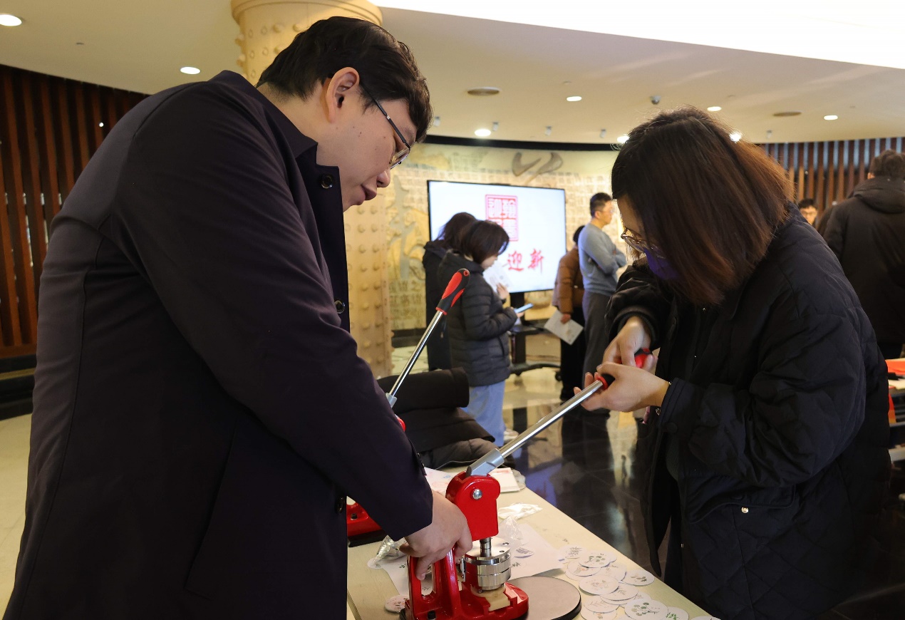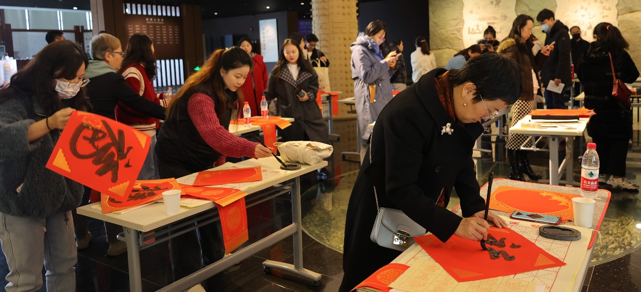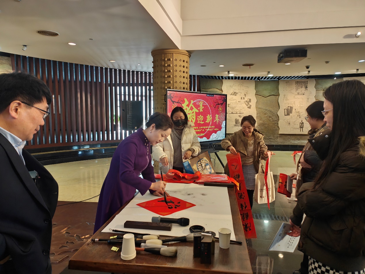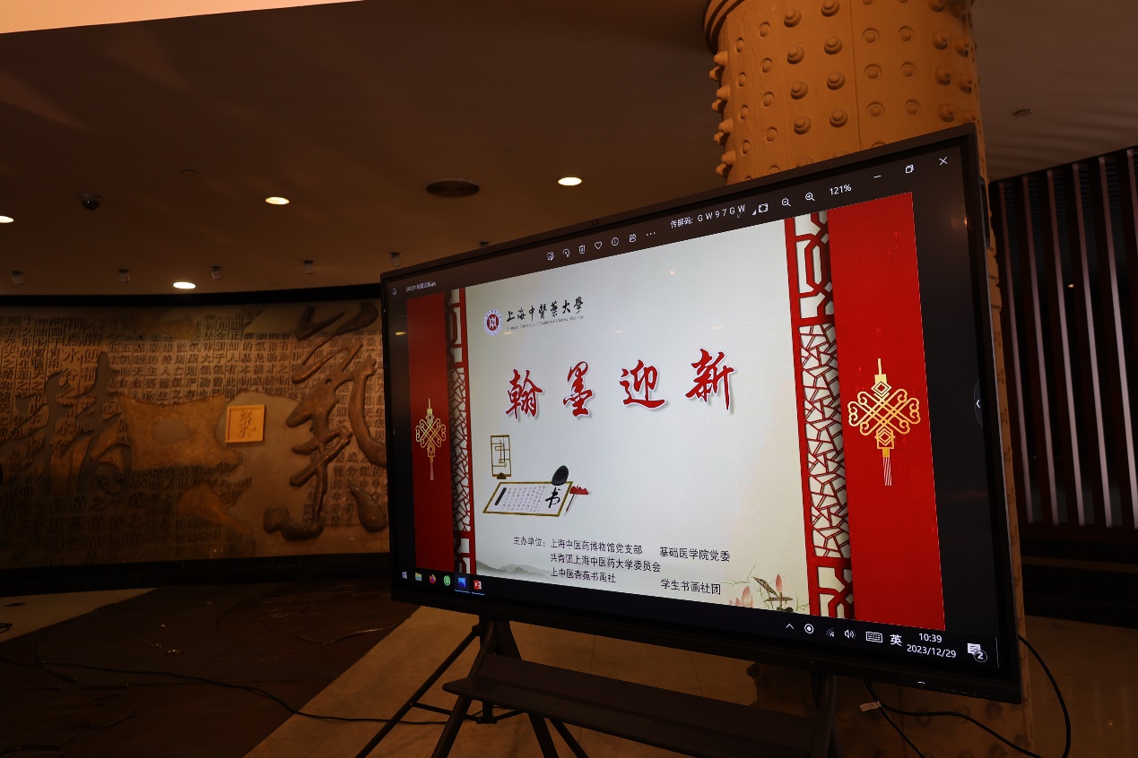 墨香辞旧岁,印章贺新年。为迎接2024年的到来,弘扬中华优秀传统文化,营造欢乐喜庆的节日氛围,上海中医药博物馆和图书馆联手举办“翰墨迎新”书法撰写暨2024年文创印章、香囊发布系列活动。12月29日,首场活动在上海中医药博物馆一楼大厅启动,吸引了开云电竞官网下载安卓爱好书法的师生踊跃参与。书画专家陆文耀,书法家高壁、顾晨洁、应逸翔,开云电竞官网下载安卓图书馆党总支书记石德响、马克思主义学院党委书记陶思亮,以及上海中医药博物馆馆长兼党支部书记李赣、副馆长王丽丽等出席活动。活动由上海中医药博物馆党支部副书记郭峰主持。